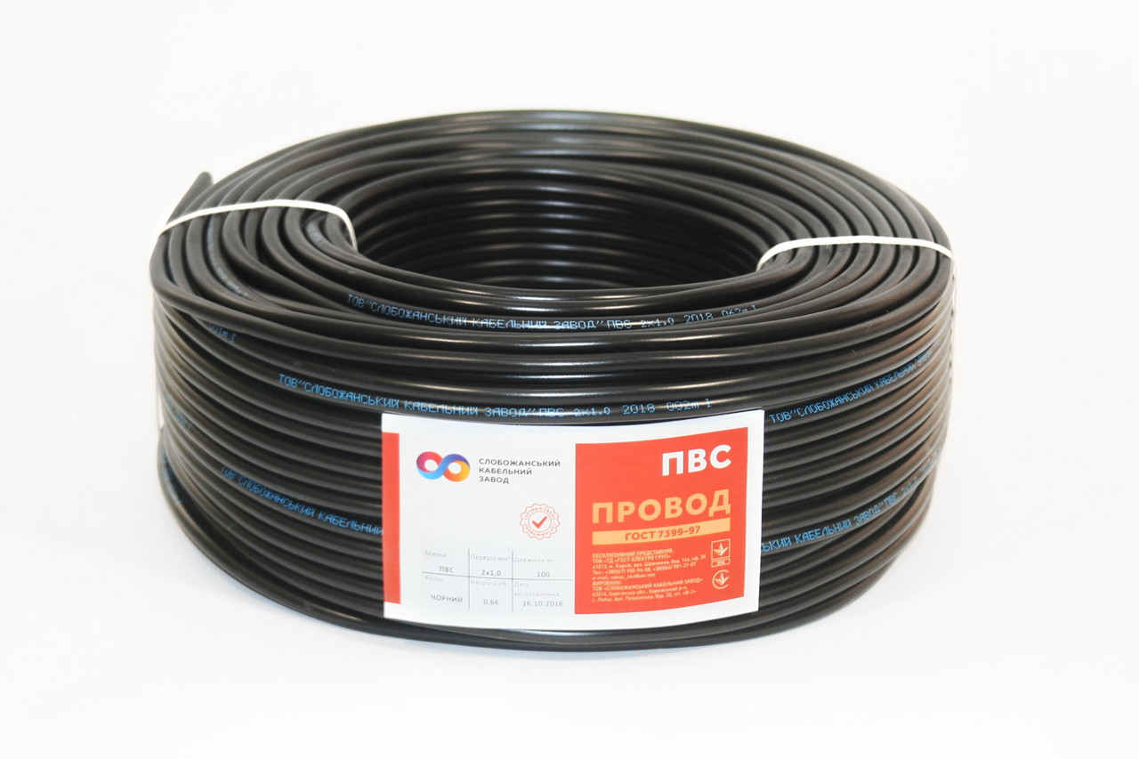 Кабель 2х1,0 ПВС мідний СЕРТИФІКАТ Слобожанський КЗ